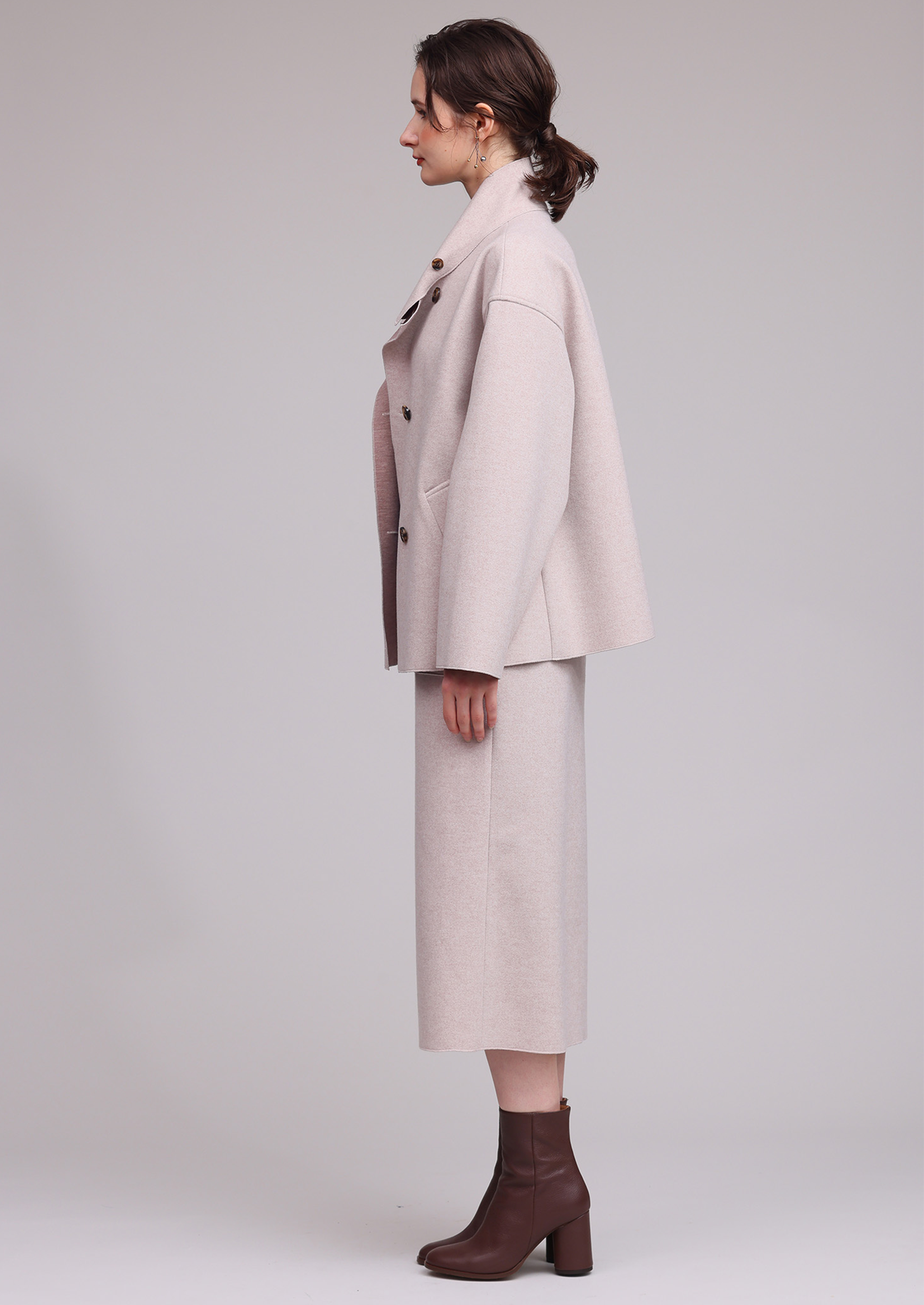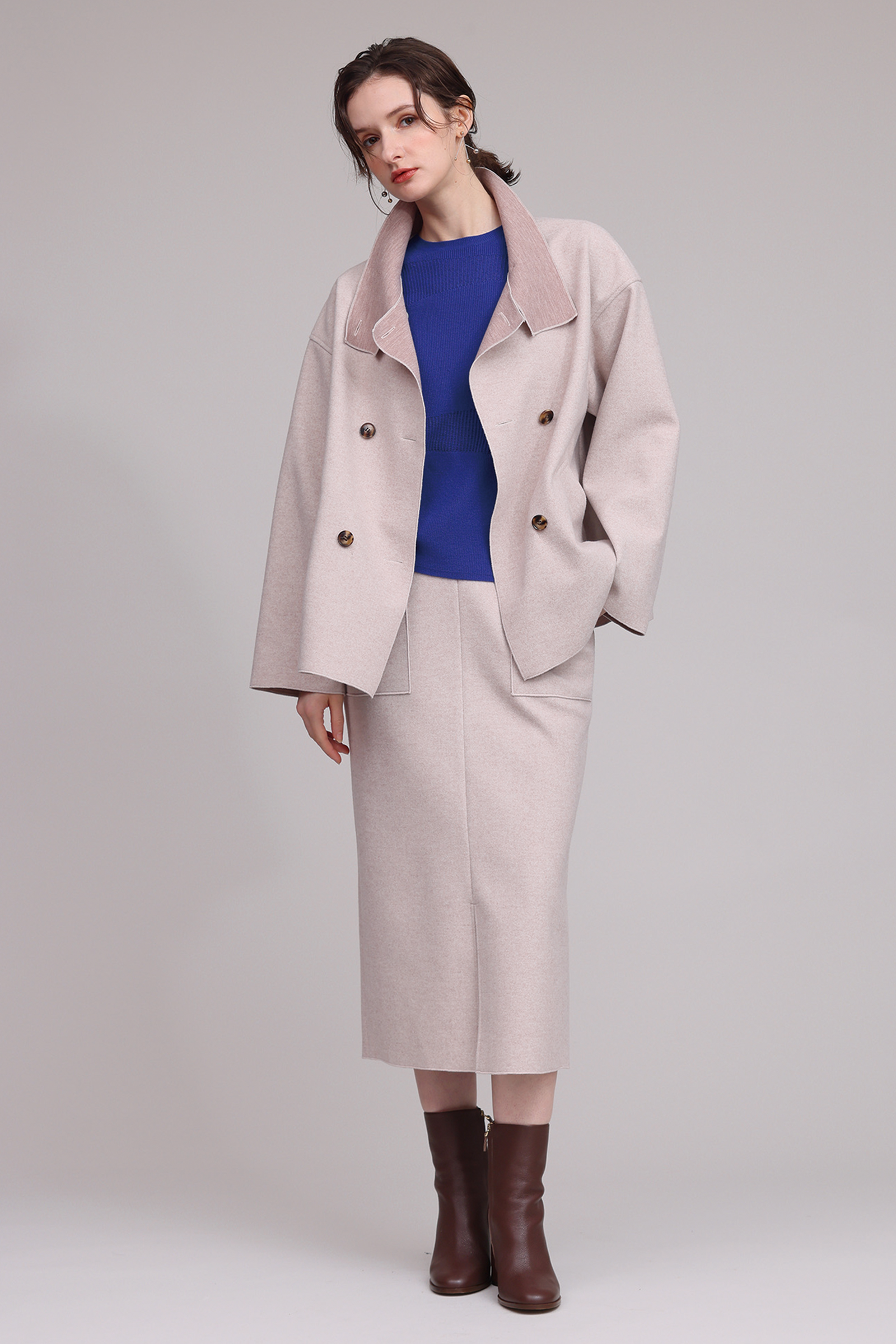 厚手のニットでももたつかず、インナーを調整して晩秋から真冬、春先まで長く着用して頂けます。同素材のガウチョパンツとセットアップでの着こなしもおすすめです。