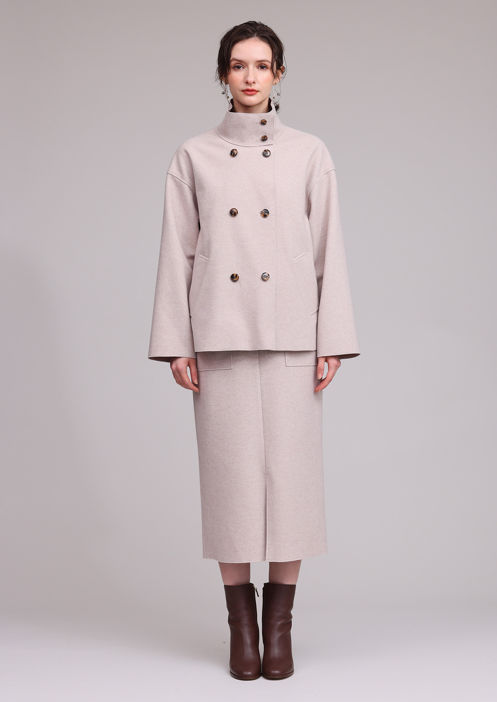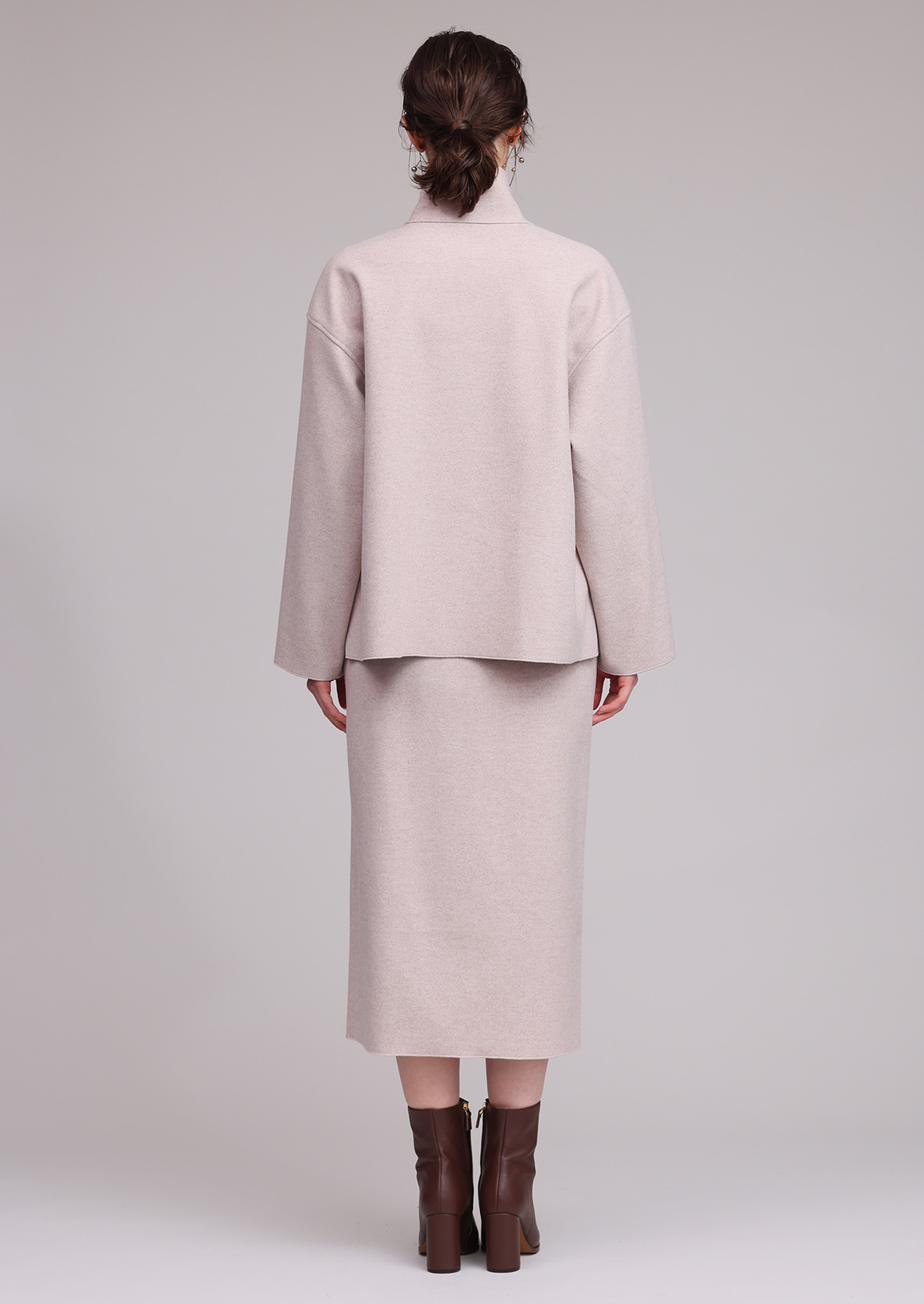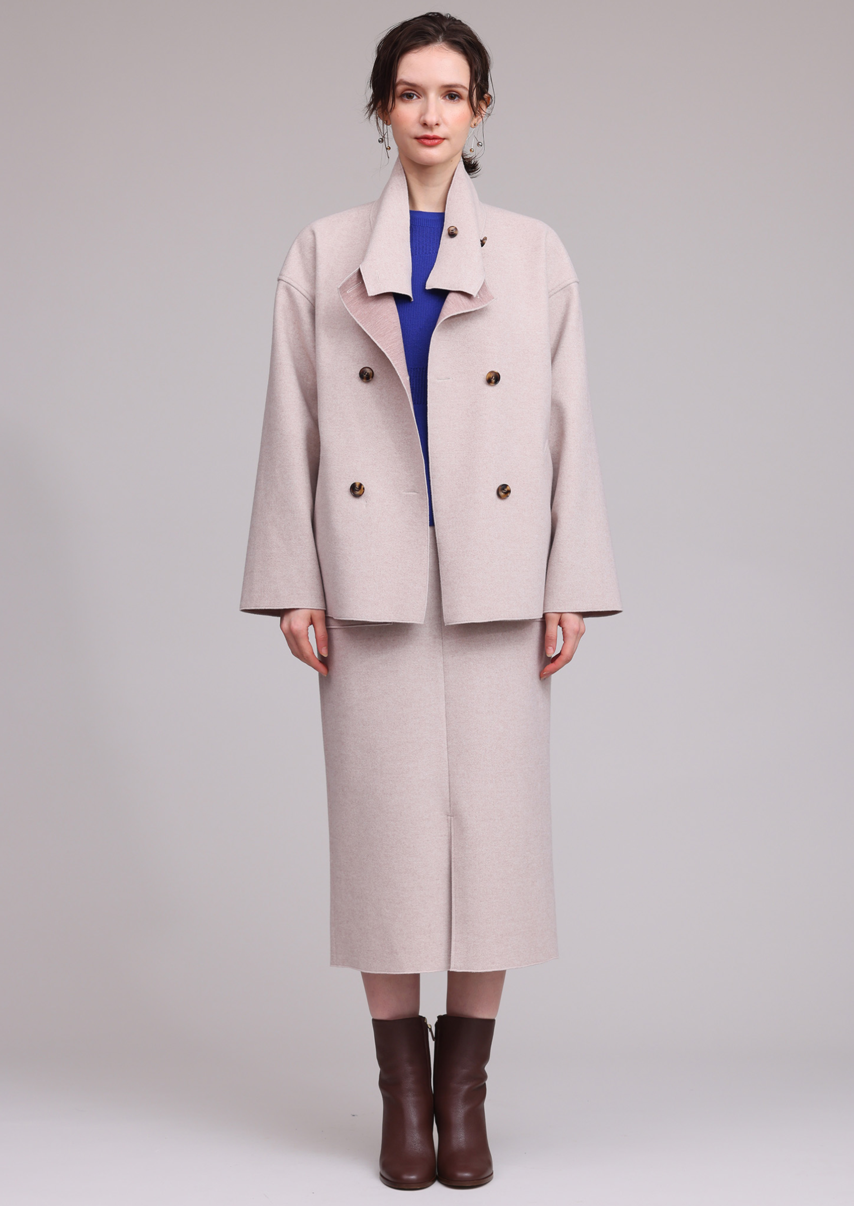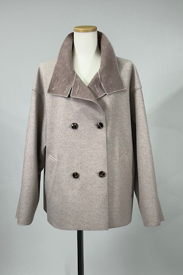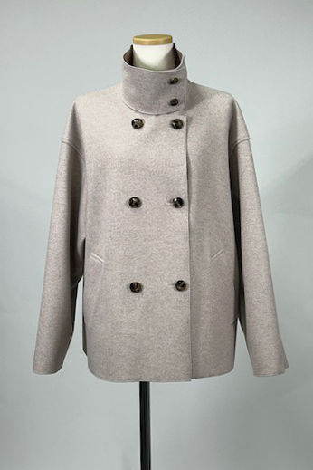 柔らかく軽いウールライク素材です。ボタンの開閉でスタンドカラーにも、テーラーにも、襟元のデザイン変化が楽しめるマルチウェイ仕様となります。カーディガン感覚で、軽く羽織れてジャケットのように室内でも違和感なくご着用いただけます。