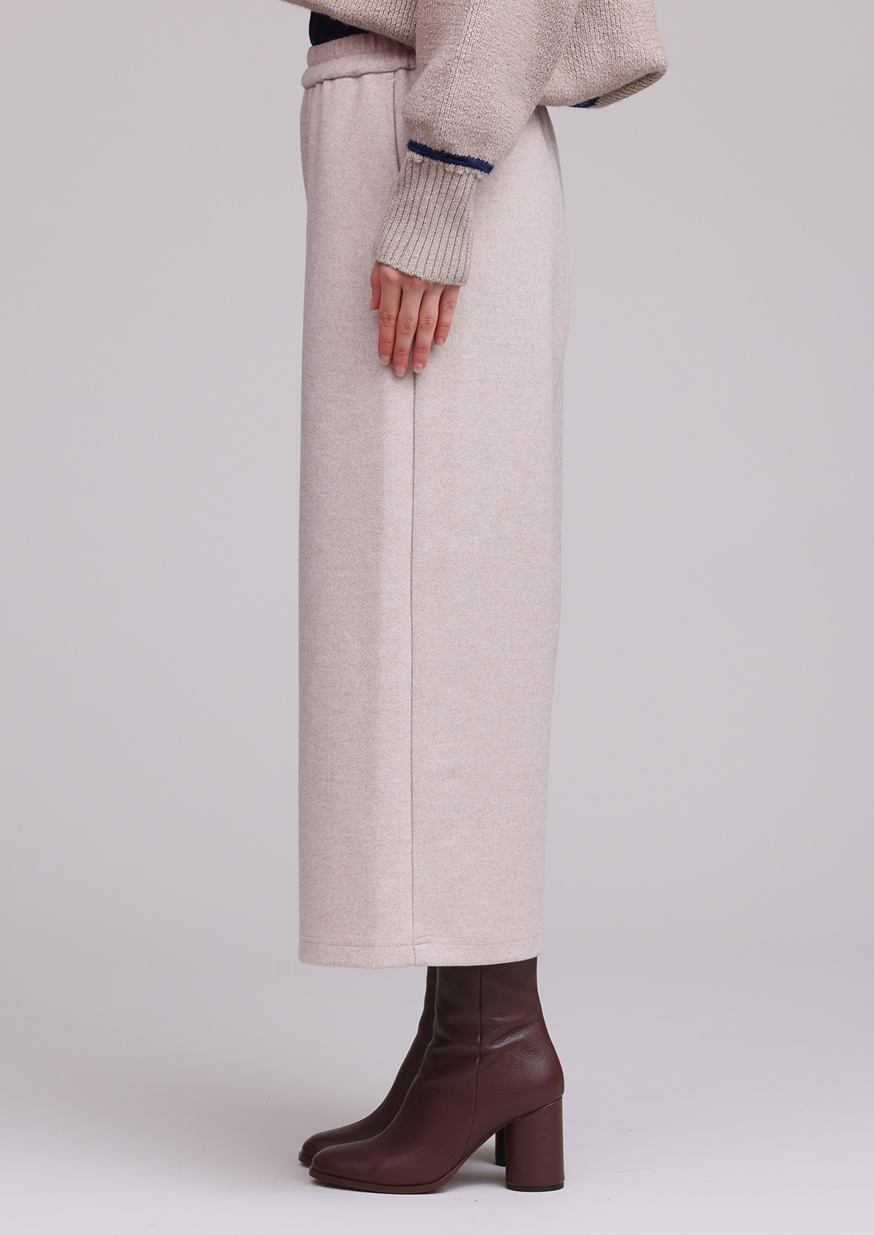 柔らかく軽いウールライク素材です。 丈直しのいらない短めの長さで、ブーツやソックスなど足元のスタイリングも楽しんでいただけます。 同素材のショートコートとセットアップでの着用もおすすめです。 ウエストゴムの履きこみタイプで、着脱が楽なのも嬉しいポイントです。