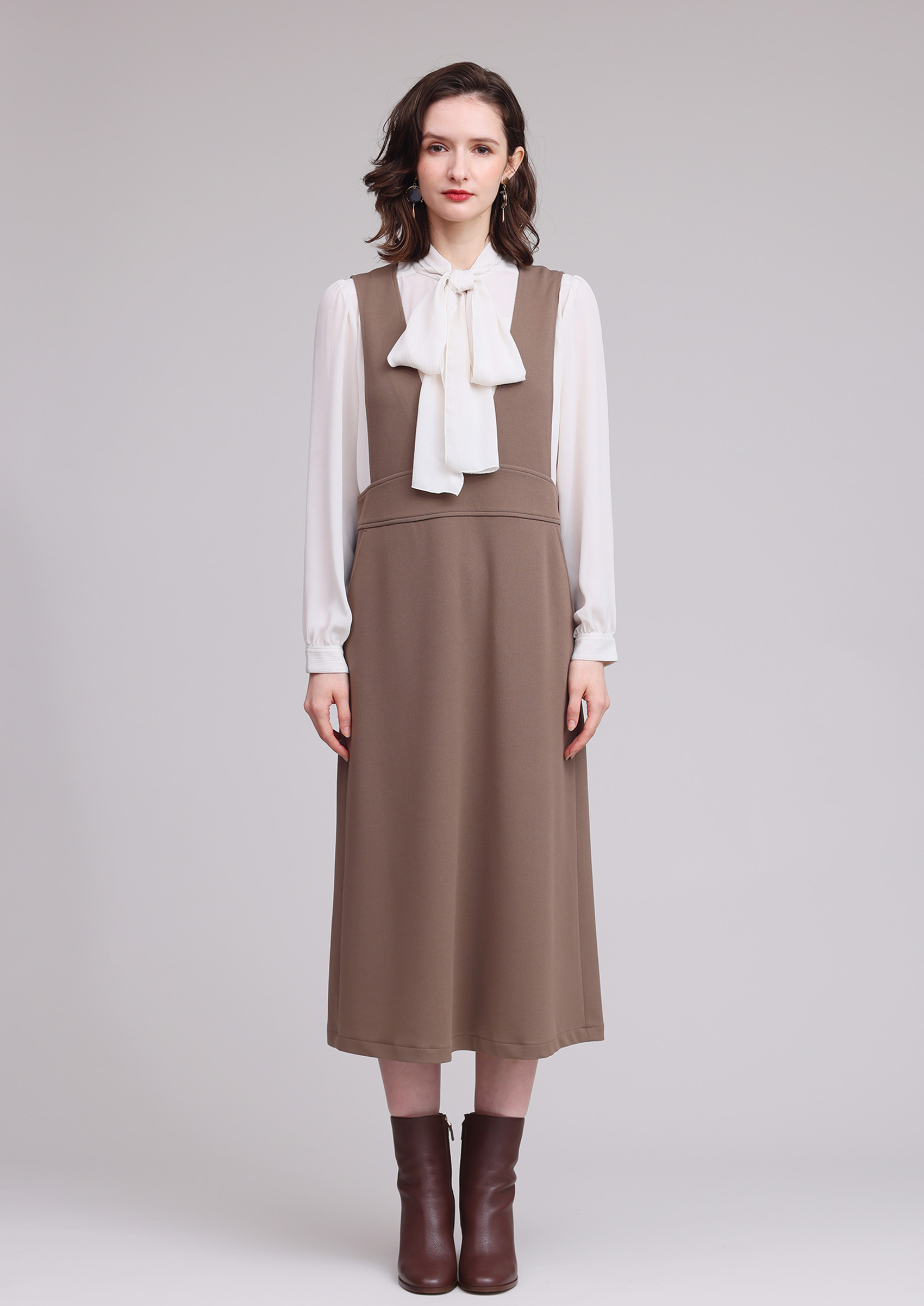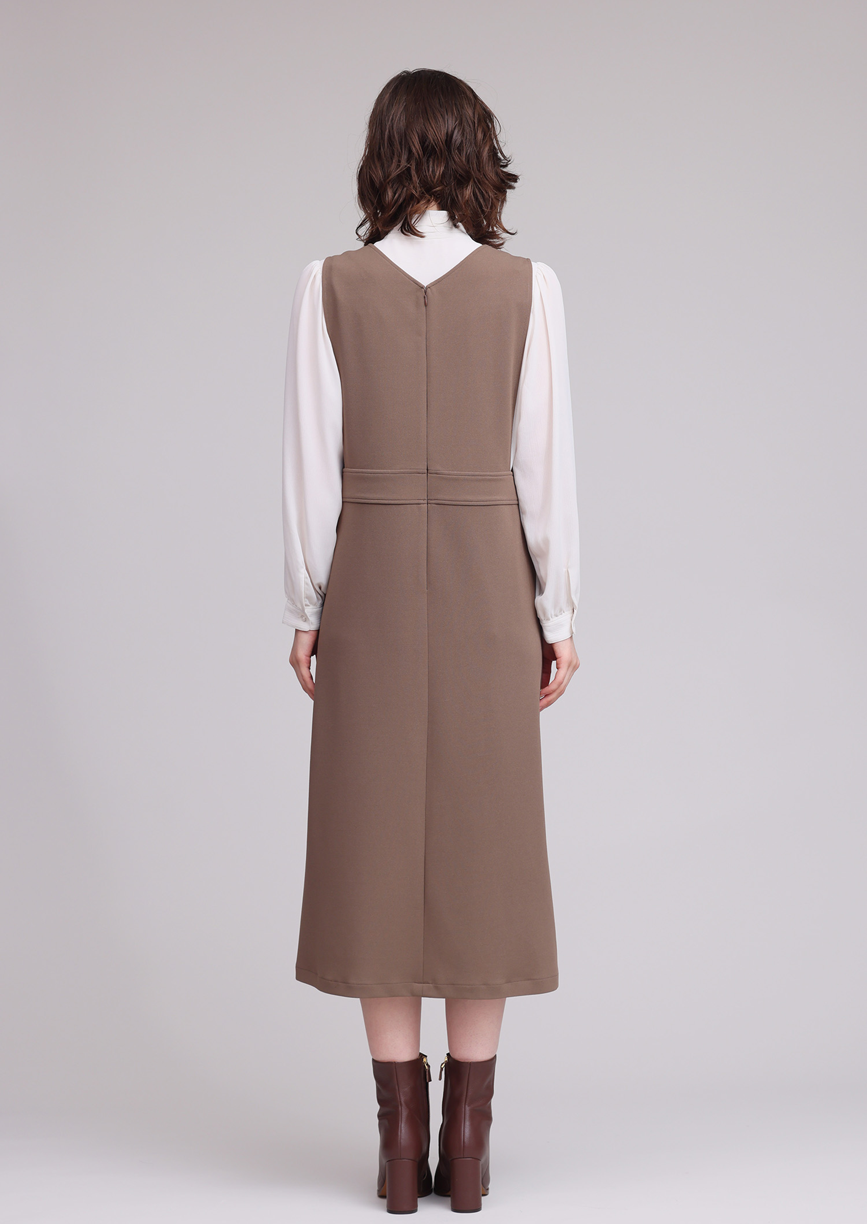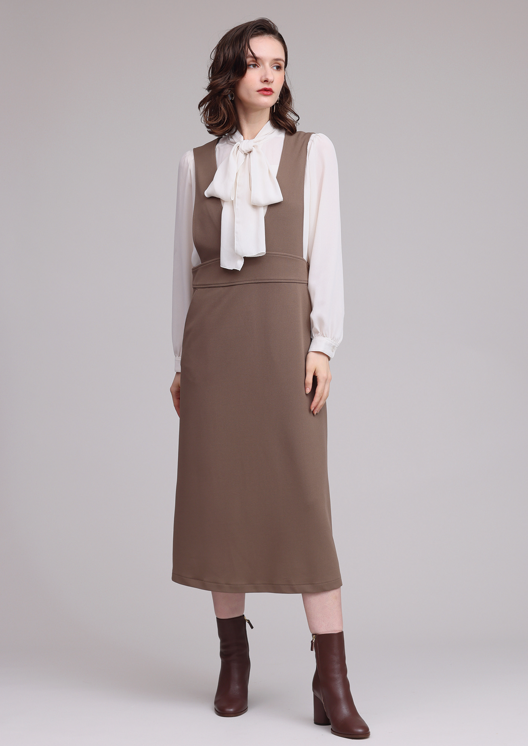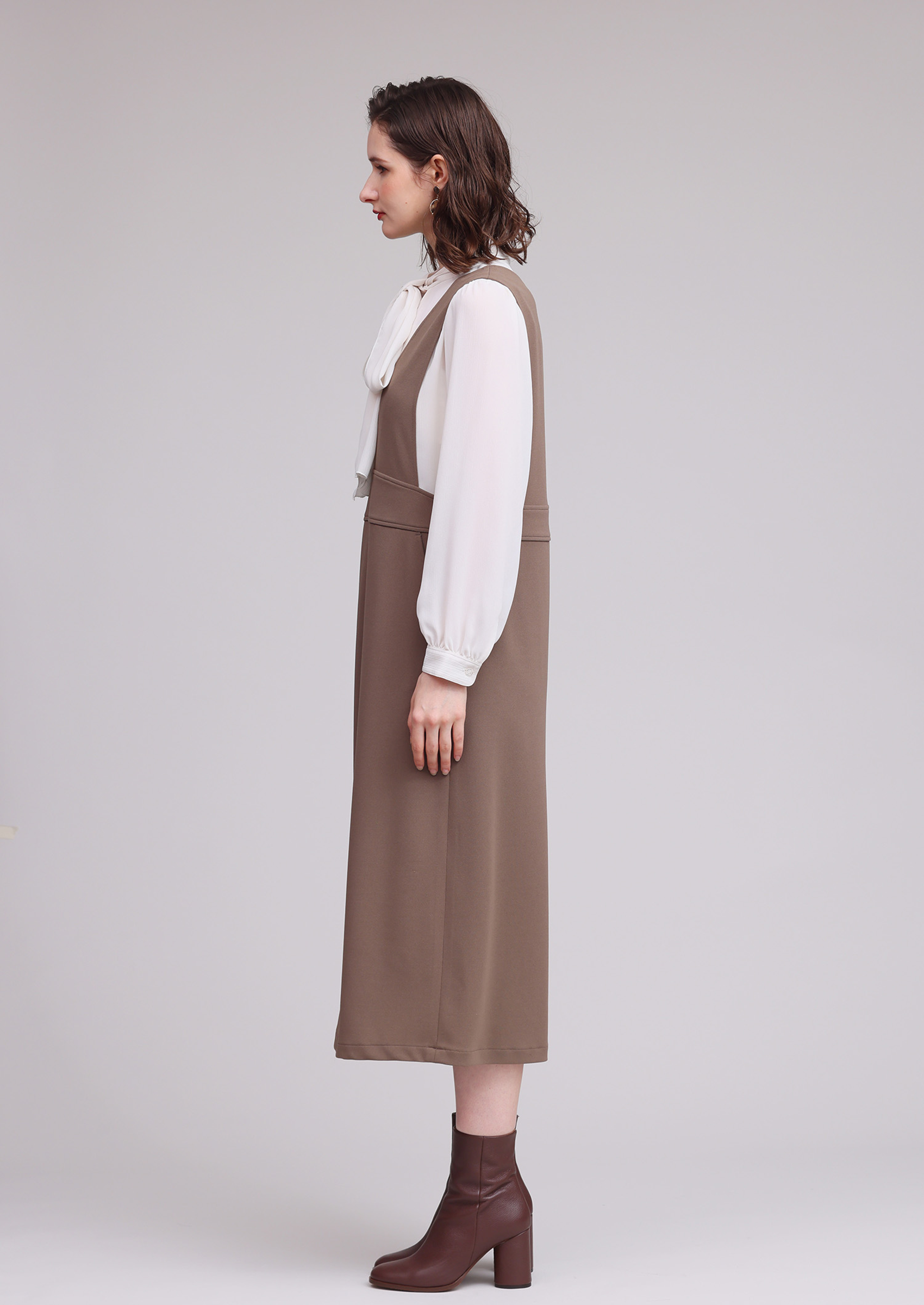 扱いやすいストレッチジョーゼット素材のジャンパースカートです。Vラインを深くカッティングすることで、大人可愛いスタイリングをしていただけます。肩部分を広く設定したデザインなので肩落ちを気にせず着用していただけます。ジョーゼット素材でシワが残りにくいので取り扱いが楽な商品です。