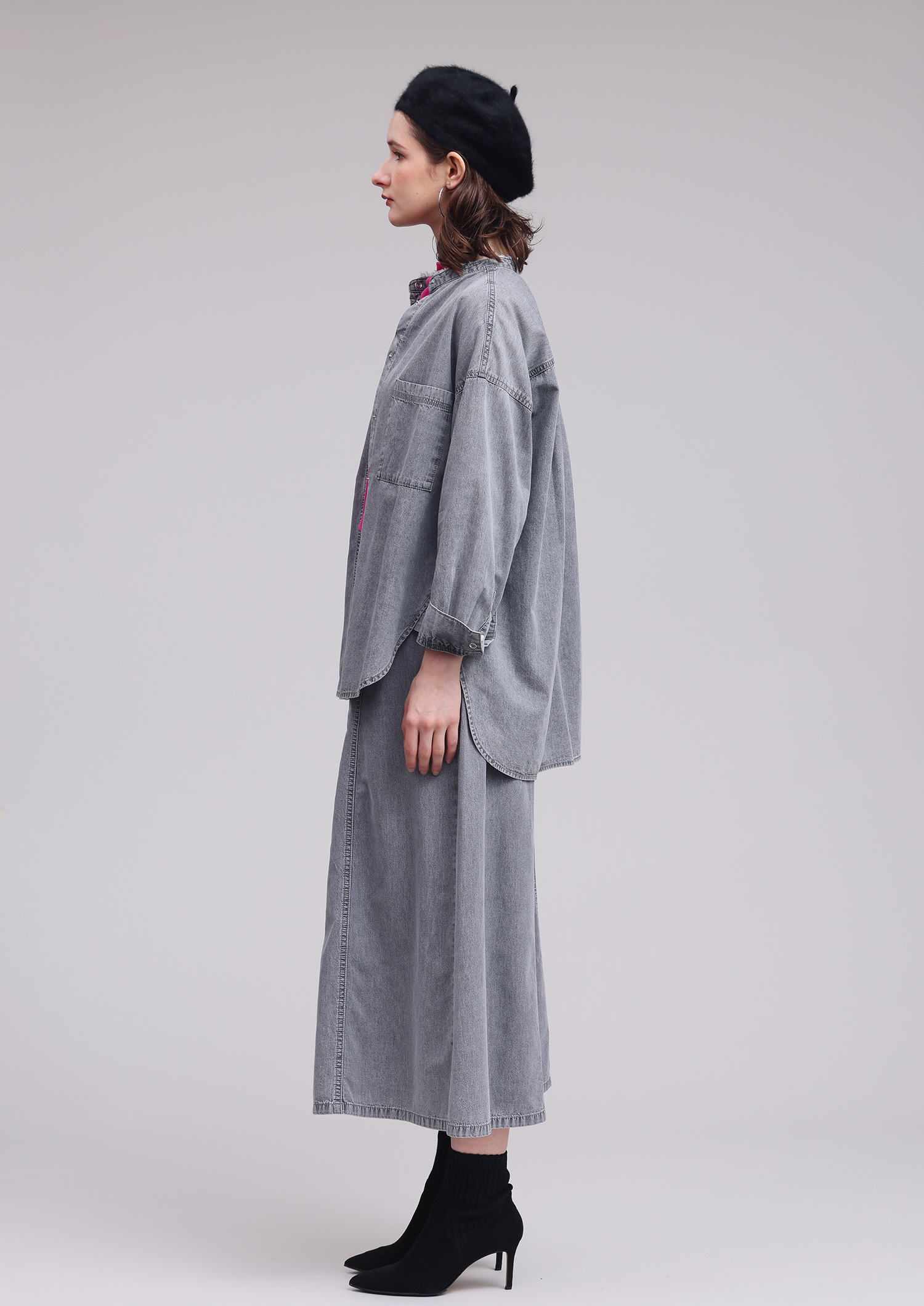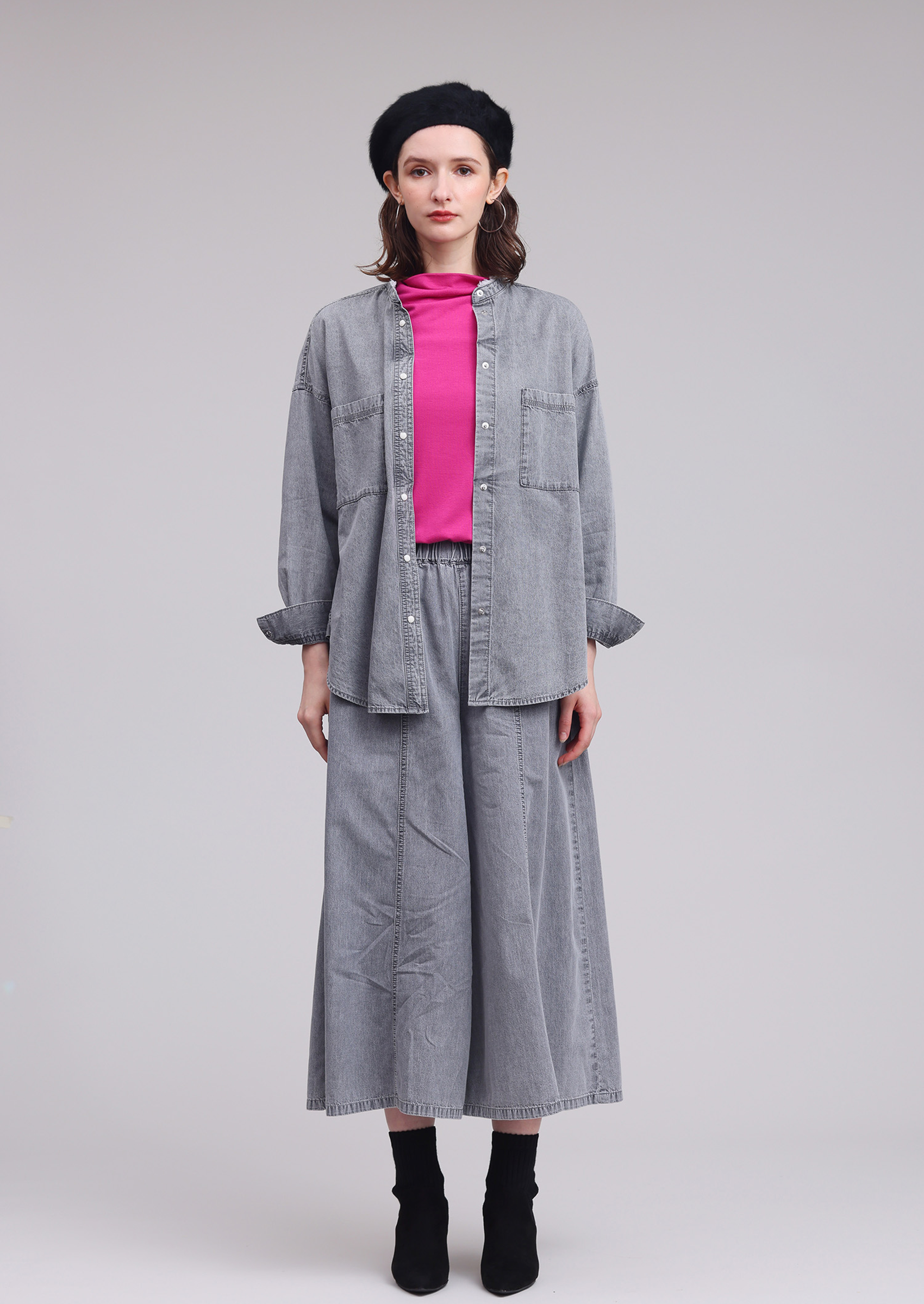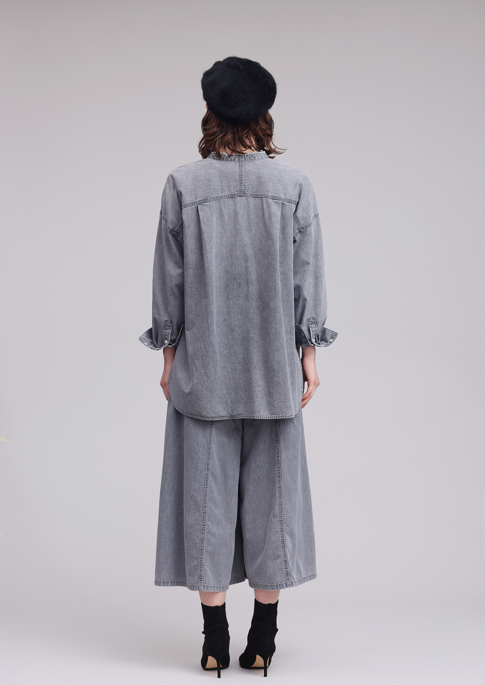ライトオンスデニムに、バイオフェード加工とケミカル加工を施し、トレンドのグレーカラーを独特な色落ちでヴィンテージの風合いに仕上げました。 オーバーサイズに設計したバンドカラーで長め丈のシャツなので羽織として汎用性に優れ、大人のきれいめカジュアルにスタイリングしていただけます。 同素材の751-1396とセットアップしてルーズ&フレアシルエットで、こなれ感の演出にもかっこいい商品です。