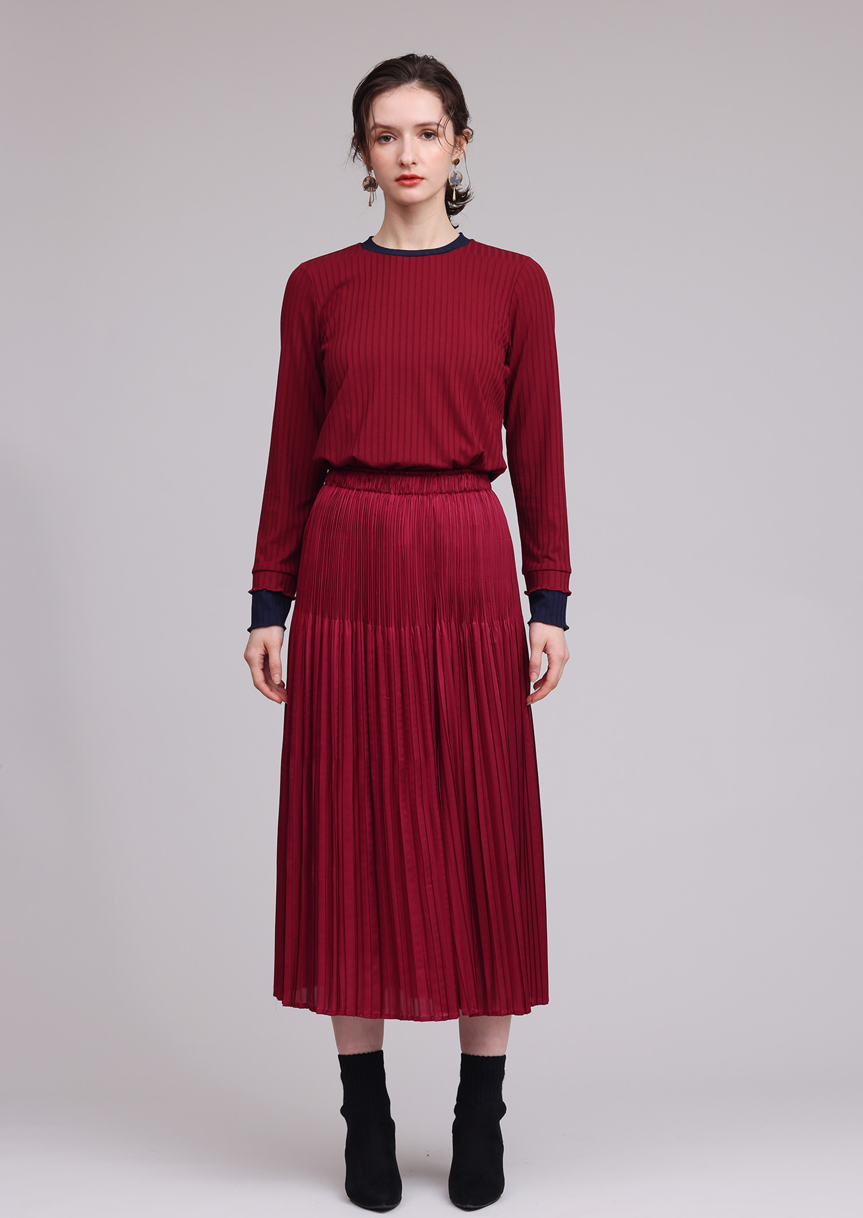 サテン素材を使用したプリーツスカートです。 クリスタルプリーツを2度掛けし、柔らかさを出した商品です。